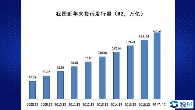我们可以从单从货币量发行情况来看,我们货币发行增长速度很快,快到什么程度?过去2008年的时候,我们的货币量只有47万亿,而现在已经上升到了快170万亿了,167.68万亿,那么这个货币收入增长速度过快,特别是在国际上已经达到了差不多达到了最高水平,除了日本。