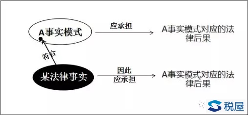 税收实体法律关系的发生、变更、消灭有其自身的特点,显然有别于民事法律关系的以意思表示为基础的发生、变更、消灭。所谓事实模式,是指法律规范所规定的、能够引起法律关系形成、变更和消灭的客观情况和现象,包括法律事件和法律行为;法律规范是国家制定和认可的,以国家强制力保障实施的社会规范。法律规范的标准逻辑结构为:事实模式+法律后果。
