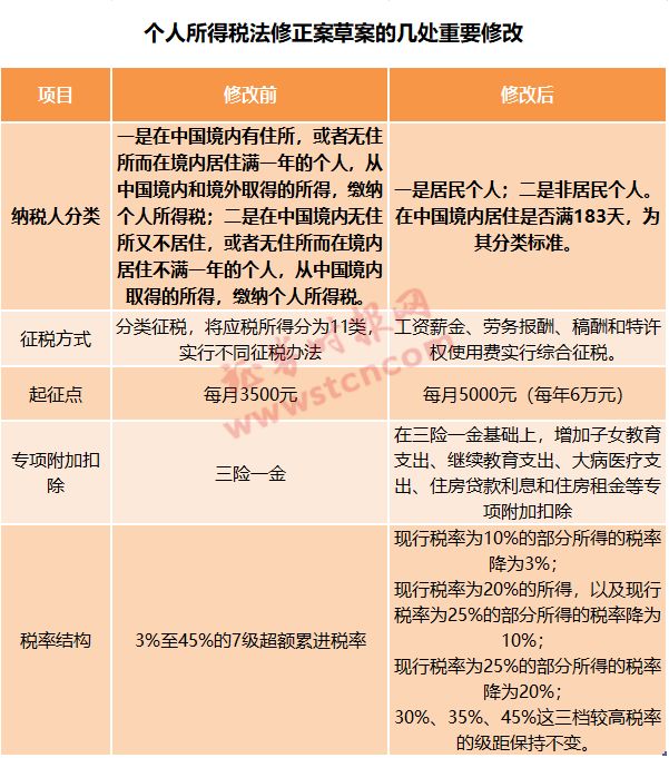 备受关注的个人所得税法修正案草案19日提请十三届全国人大常委会第三次会议审议,这是个税法自1980年出台以来第七次大修,也是一次根本性变革。