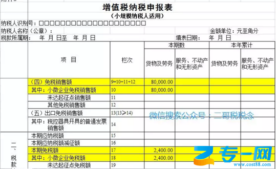 比如:杂货铺是一个个体户,2018年1季度销售收入8万元,那么在进行增值税申报的时候,就需要填写到第9、11栏,而不是第9和第10栏了。