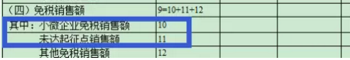 其实,11栏有专门的填写范围,第11栏"未达起征点销售额":填写个体工商户和其他个人未达起征点(含支持小微企业免征增值税政策)的免税销售额,本栏次由个体工商户和其他个人填写。