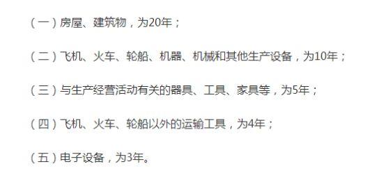 税法规定的固定资产最低折旧年限如下: