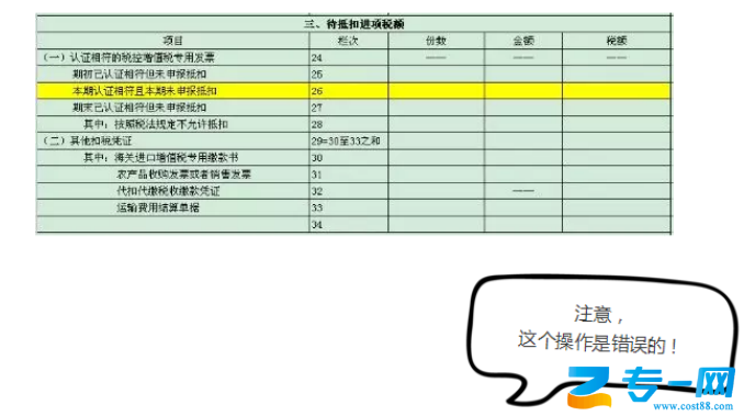 经常会有纳税人朋友因为当期销项税额小于进项税额或者想要在当期多交点税,而将部分进项税额填到了附列资料(二)第三部分"待抵扣进项税额"的第26栏"本期认证相符且本期未申报抵扣"打算等到下期再抵扣。