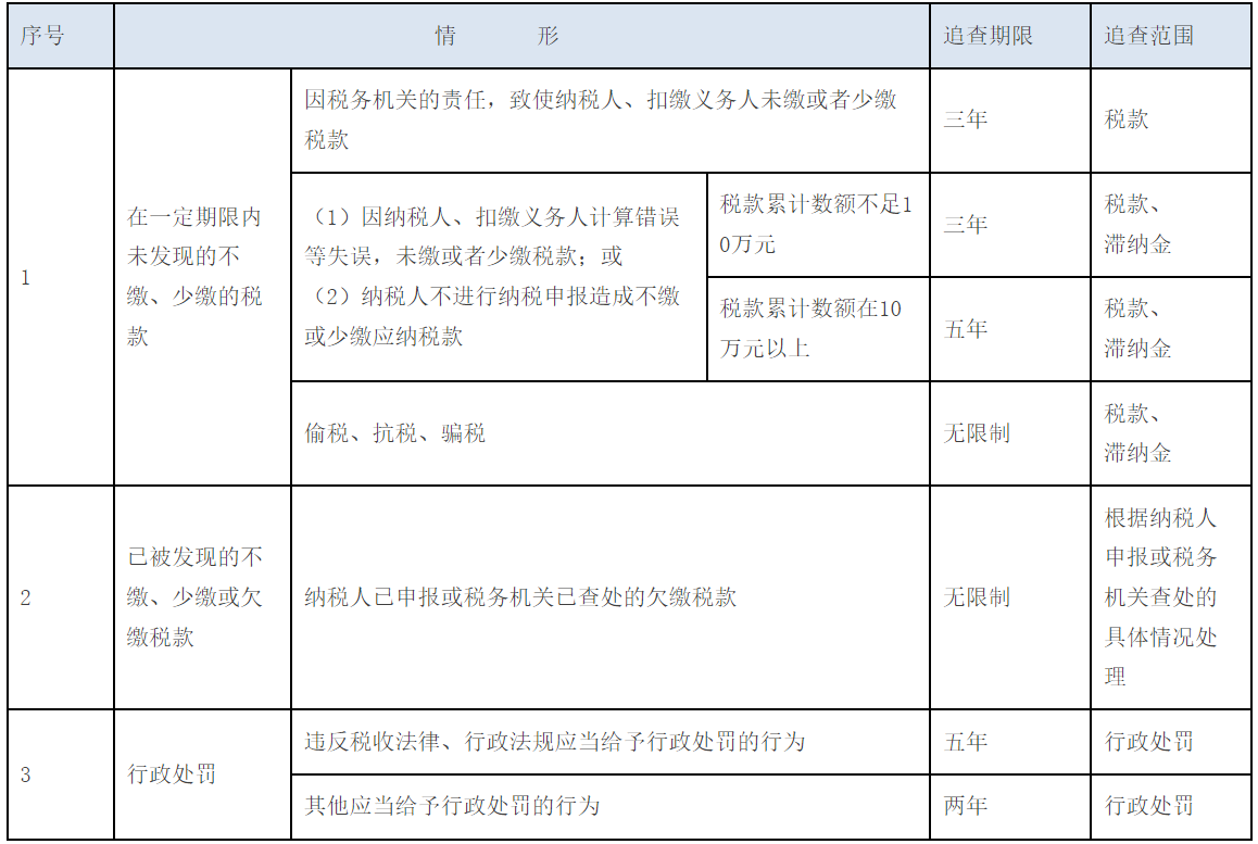 最后,将税务机关“翻旧账”的时间期限列表如下,供各位读者参考。